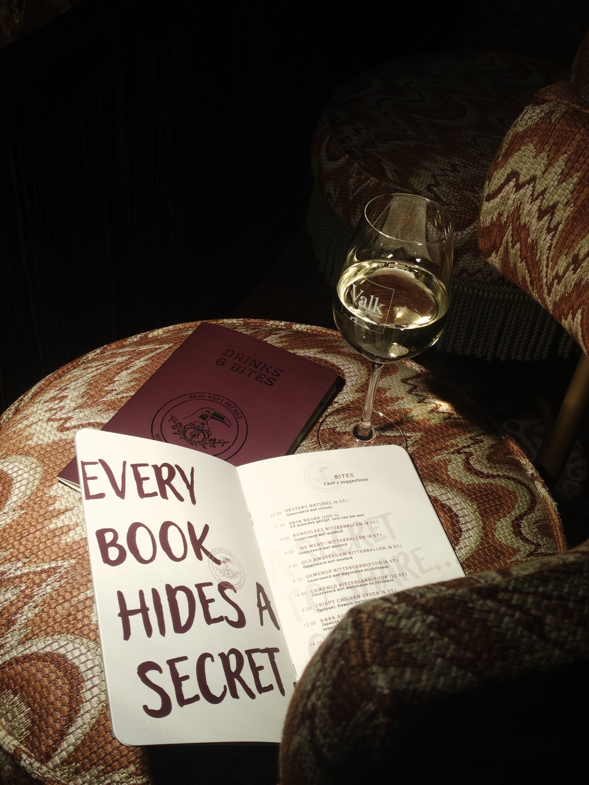 Psst ... in onze kelder (op -1) zit een geheimzinnige bar genaamd Best Kept Secret. U kunt toegang krijgen tot de bar door aan het middelste zwarte boek te trekken. Et voila, de deur gaat voor u open.