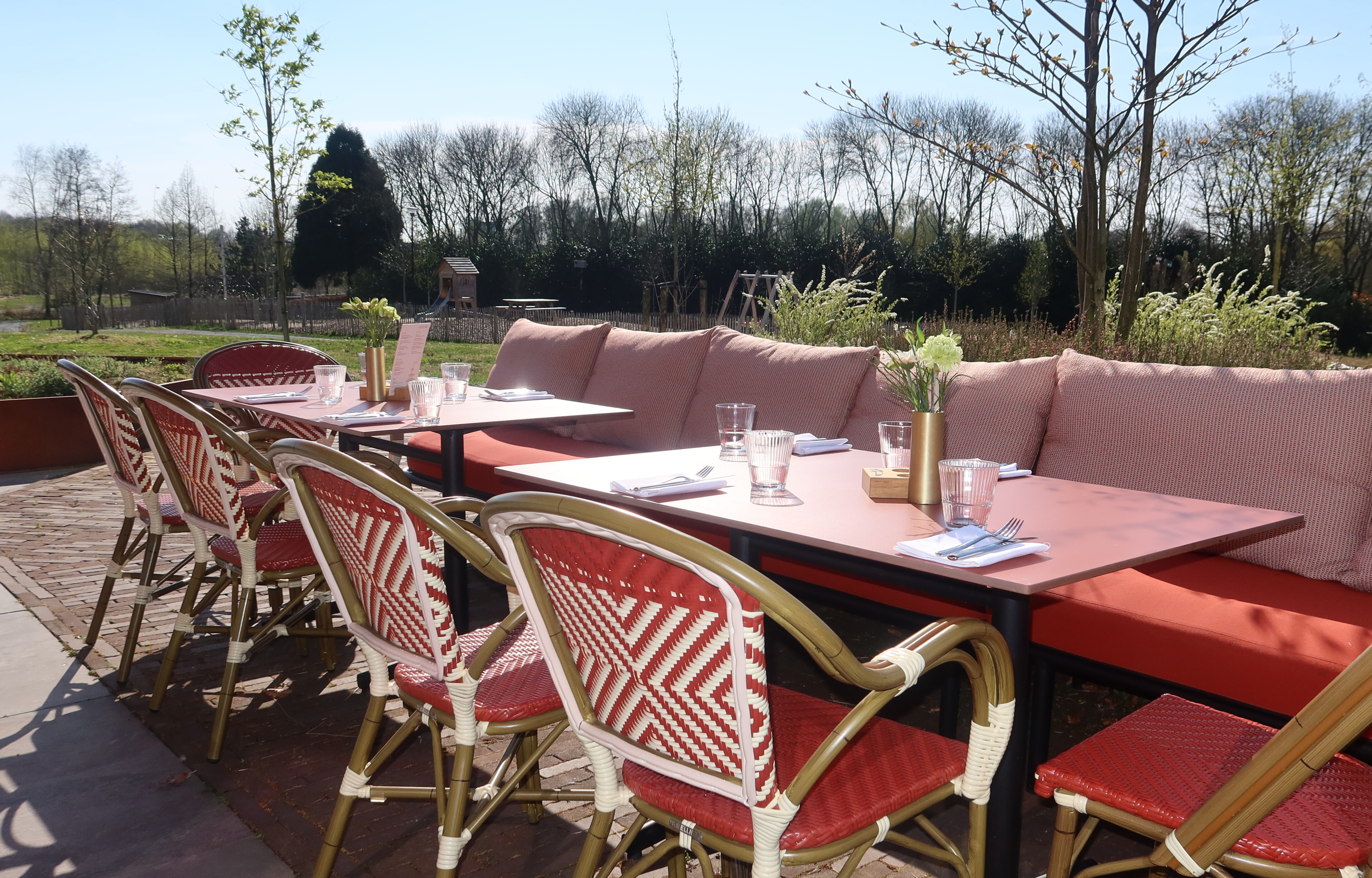 Ons terras? Denk aan een oase van rust, omringd door groen dat u direct in de relaxmodus brengt. Of u nu uitgebreid komt lunchen, borrelen met uw favoriete gezelschap, of blijft hangen voor een diner in de avondzon, hier zit u goed. Letterlijk.